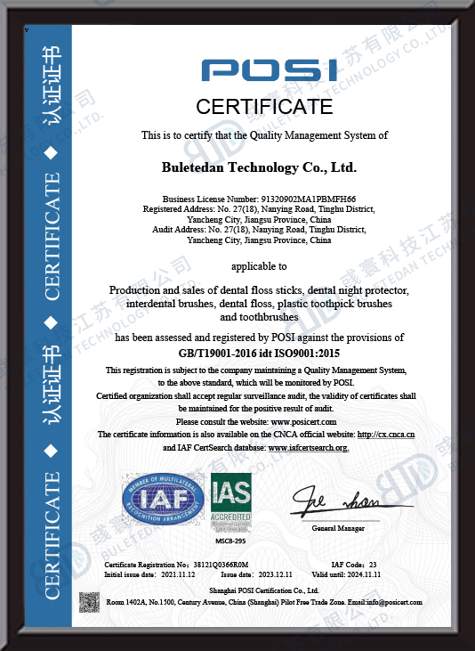 Le 1er juillet, le parc industriel de soins bucco-dentaires de Buletedan Jiangsu Co., Ltd. a été créé, avec une cérémonie d'inauguration des travaux tenue le 1er octobre, ce qui en fait une base de production mondiale.
